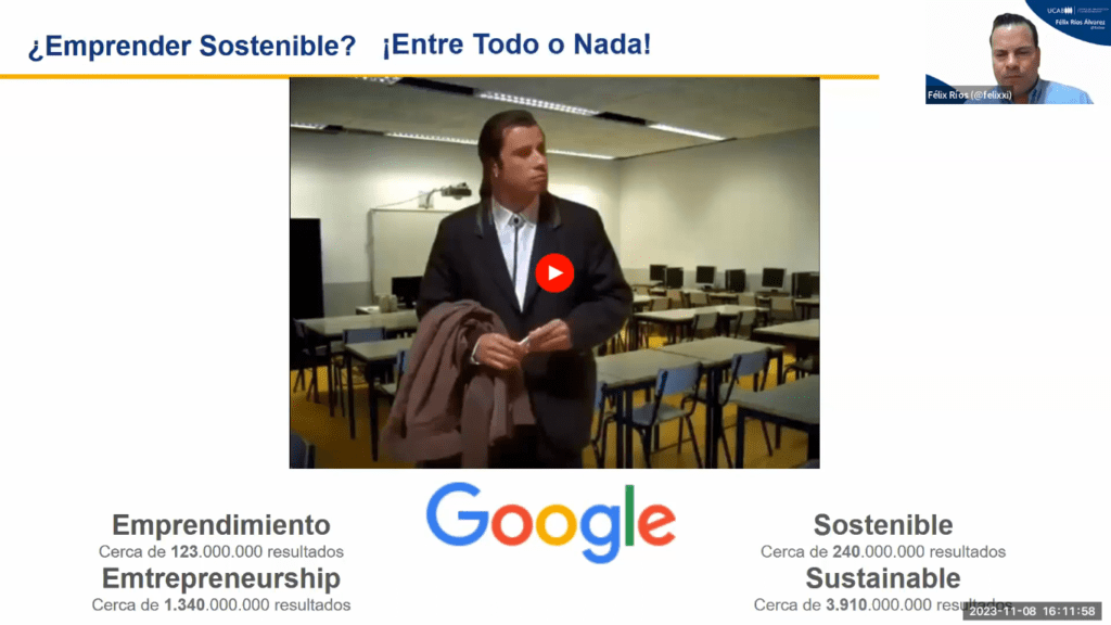 Ríos inició la conversación con los presentes en la sala virtual, definiendo el emprendimiento, la moda y la sostenibilidad como conceptos. Seguidamente, analizó el espíritu emprendedor para también comprender el concepto del desarrollo sostenible en un entorno que cambia.